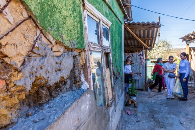 Am späten Nachmittag begannen wir mit unseren Familienbesuchen. Die erste Familie, die wir besuchten, träumt davon, Hühner zu züchten oder in einem Gewächshaus Gemüse anzubauen. Ihr Haus ist stark baufällig und nicht isoliert; die Wände sind schimmlig. Es wird dringend Winterkleidung für die Kinder und Holz zum Heizen benötigt. Diese Familie nehmen wir in unser diesjähriges Programm zur Unternehmensgründung auf.